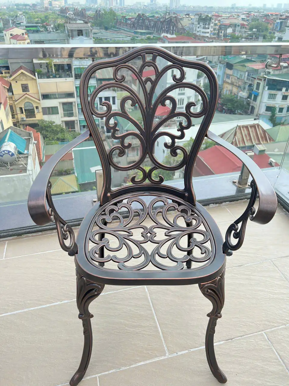 Bộ bàn ghế nhôm đúc mặt đá D94 6 ghế nổi bật với thiết kế tân cổ điển sang trọng, màu nâu đồng tinh tế và hoa văn cổ điển bắt mắt – là lựa chọn lý tưởng để tạo điểm nhấn ấn tượng cho sân vườn, ban công, hiên nhà hay khu vực hồ bơi.