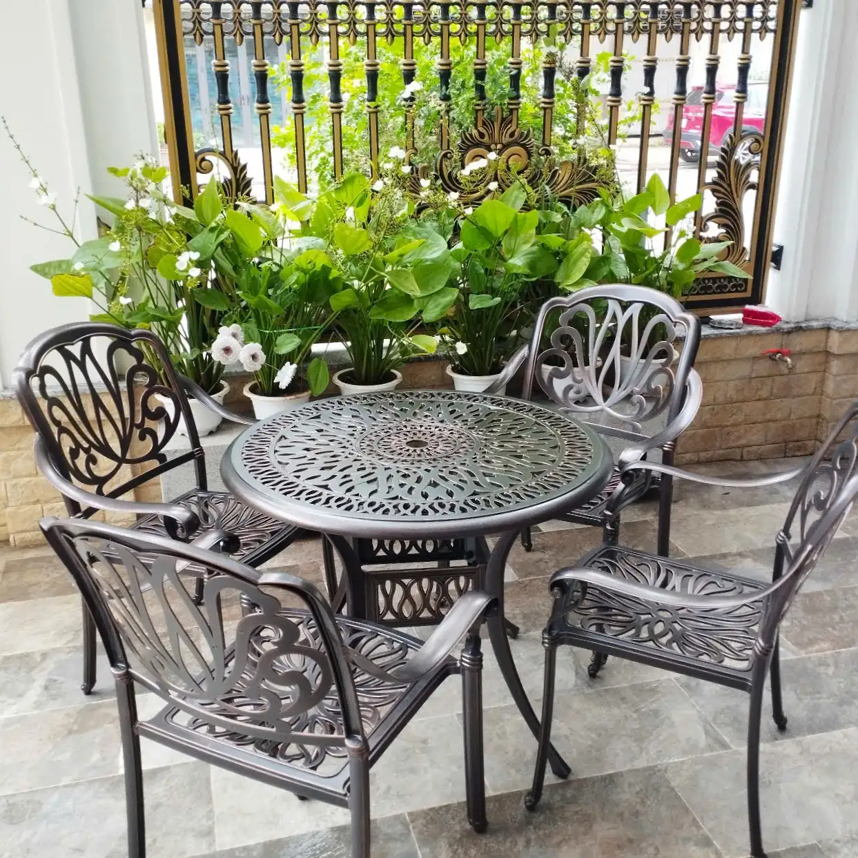 Tính năng của nhôm đúc: Chuyên dùng ngoài trời, chống thấm và chống nắng, chống ăn mòn, không rỉ sét. Bàn ghế đều là nhôm đúc nguyên khối rất chắc chắn, không ngại mưa nắng, phù hợp với nhiều môi trường ngoài trời, bền đẹp.