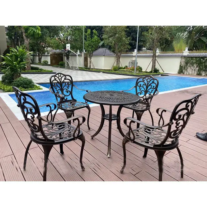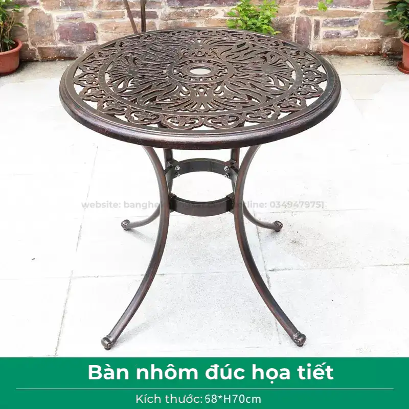 Đặc tính nổi bật của chất liệu nhôm đúc là nhẹ, mềm dẻo có độ bền cao, dễ tạo hình uốn nắn, khác hẳn với chất liệu sắt thép, hay đồng hoặc gang nó rất nặng, cứng và dễ gãy, chính vì vậy mà bàn ghế sân vườn nhôm đúc thường có giá thành cao hơn các loại kia nhưng lại được nhiều khách hàng lựa chọn bởi nó được phủ thêm một lớp sơn tĩnh điện cao cấp nữa nó giúp cho sản phẩm không bị chày xước khi bị va đập không bị han gỉ khi để ngoài trời và giữ được độ bền màu lâu hơn khi sử dụng.