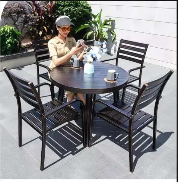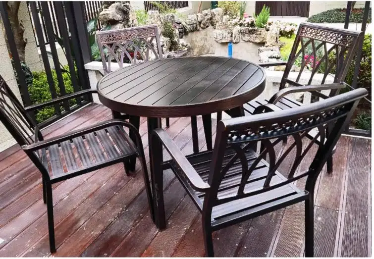 Bàn ghế sân vườn ngoài trời được làm bằng 100% nhôm đúc kết hợp thêm một lớp sơn tĩnh điện giúp sản phẩm chắc chắn và bền đẹp hơn, sản phẩm được thiết kế đơn giản nhẹ nhàng và không quá cầu kỳ về kiểu dáng chi tiết hoa văn, nó đủ đơn giản để phù hợp với mọi không gian ngoài trời từ hiện đại đến cổ điển.