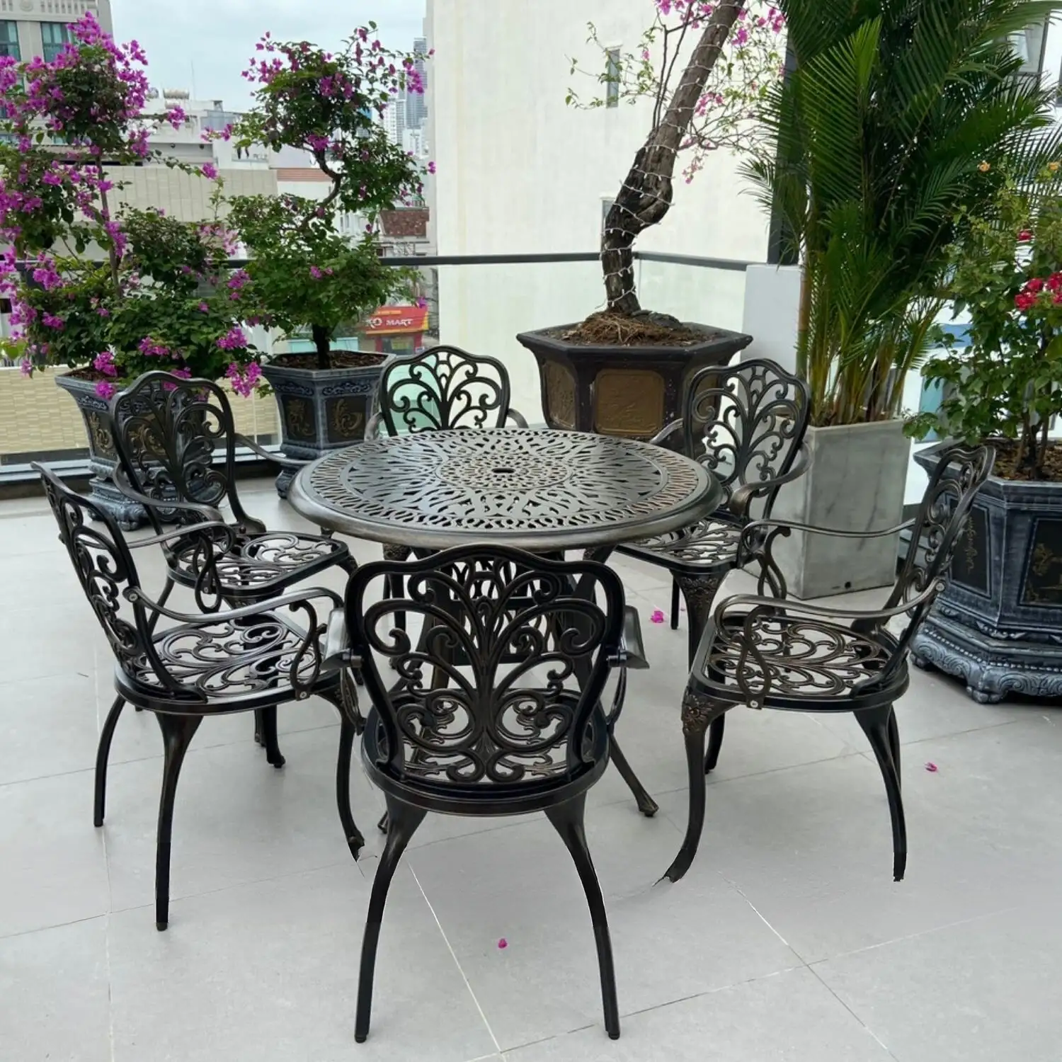 – Tên sản phẩm : Bộ Bàn Ghế Sân Vườn Nhôm Đúc D90-6GH