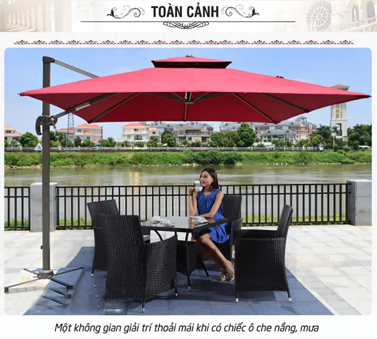 Dù lệch tâm vuông 3m hợp kim nhôm xoay 360 màu xanh