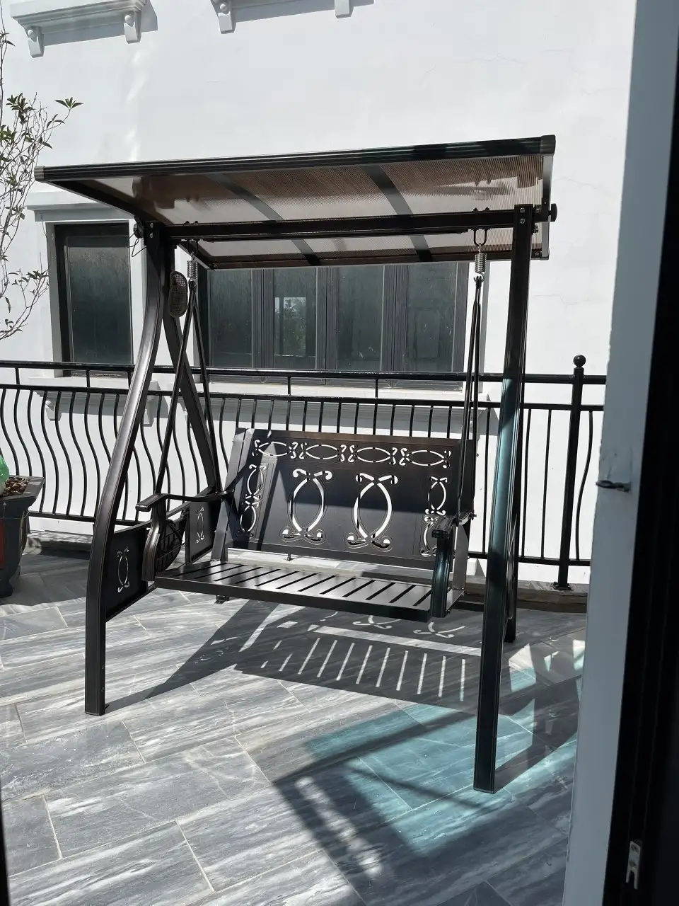 – Chất Liệu : Nhôm Đúc Nhôm đúc sơn tĩnh điện, mái che panel nhựa, kèm đệm bọc vải Polyester trượt nước và pin năng lượng mặt trời